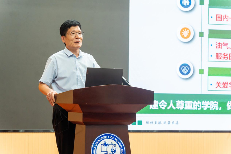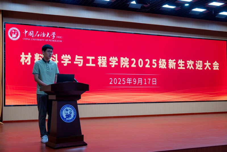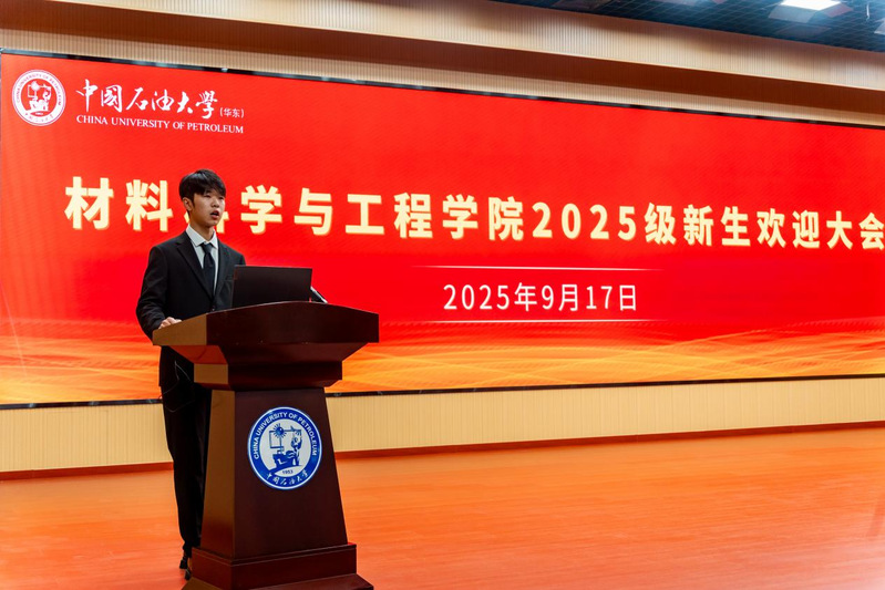 材料类(拔尖班)2501班张中韦同学代表本科生新生发言。他分享了初入校园感受到的关怀与温暖,以及对大学生活的憧憬和向往。号召同学们以“路虽远,行则将至;事虽难,做则必成”的信念追逐梦想,努力成为有理想、有本领、有担当的石大学子,为国家材料事业发展和民族复兴贡献青春力量。