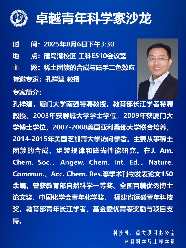 【学术报告预告】稀土团簇的合成与磁手二色效应-ag旗舰厅在线